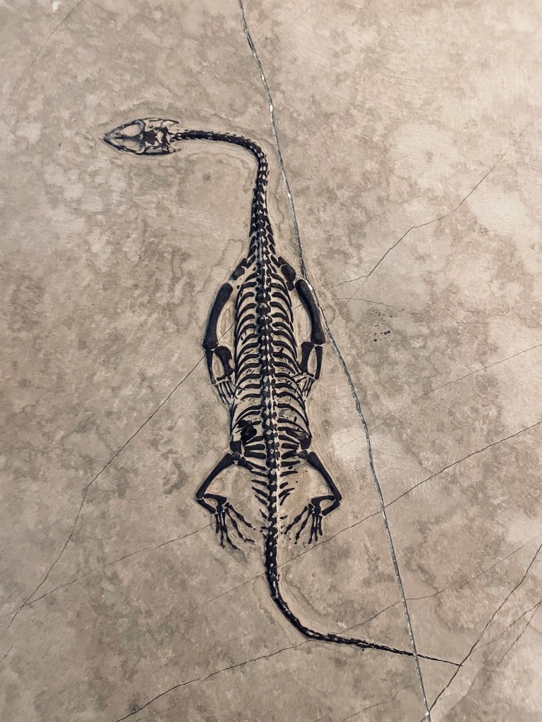 Keichousaurus Hui is the Popeye of ancient semi-aquatic reptiles. Enlarge ulna (wrist) bones gave this long necked lizard paddle like arms, which likely made it easier to swim and move. It’s sharp teeth points to a primarily fish diet. Interestingly enough, fossil findings also indicate that these swimming reptiles reproduced through pelvic birth rather than eggs like other reptiles.