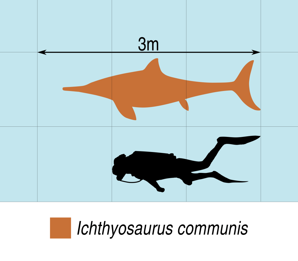 The Ichthyosaurus was an aquatic apex predator of it’s time. Measuring roughly 9ft in length, this 500 lb creature ruled the oceans up until nearly the time that Mosasaurs entered the scene. With a long mouth, filled with sharp carnivorous teeth. Imagine a bulbous meat eating dolphin, and you pretty much get the idea.