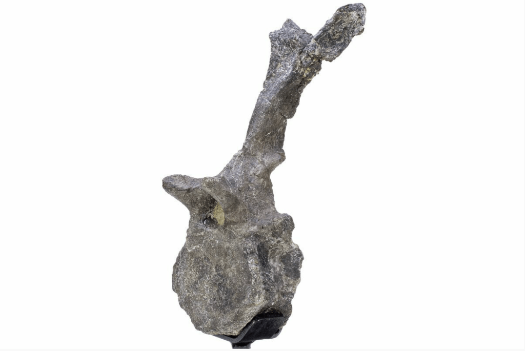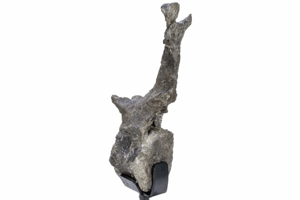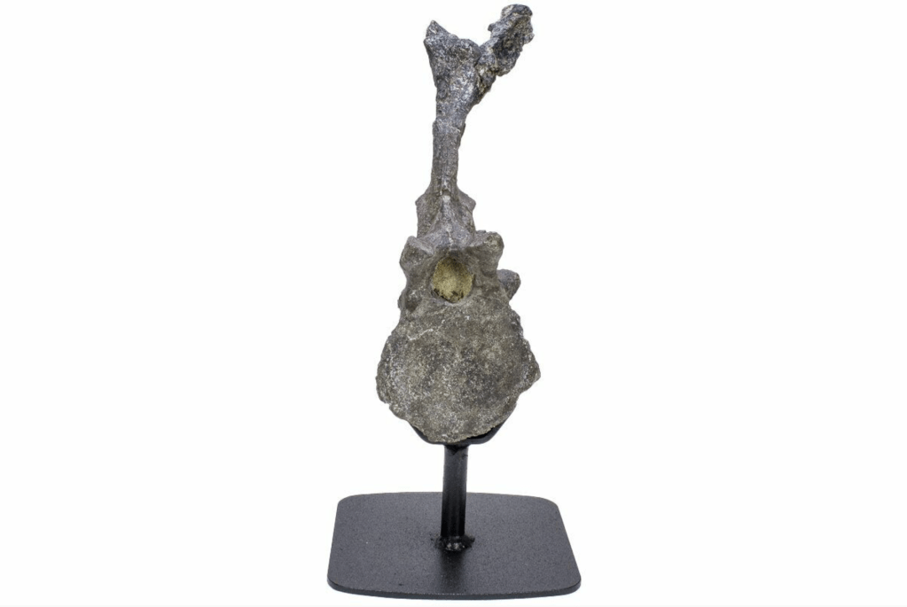 Stegosaurus fossils are not common, especially since these grazing animals had small heads with no teeth. Their fossils are also highly sought-after as the Stegosaurus is one of the most identifiable dinosaurs of all time. This anterior caudal (tail) vertebra shows ‘prong morphology’, and stands 8.7 inches tall.