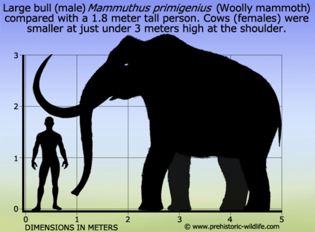For a prehistoric species, they lived relatively recently – between 20,000 – 50,000 years ago. This placed them in proximity with early humans, who hunted them and would use Mammoth bones and tusks to craft tools and dwellings.